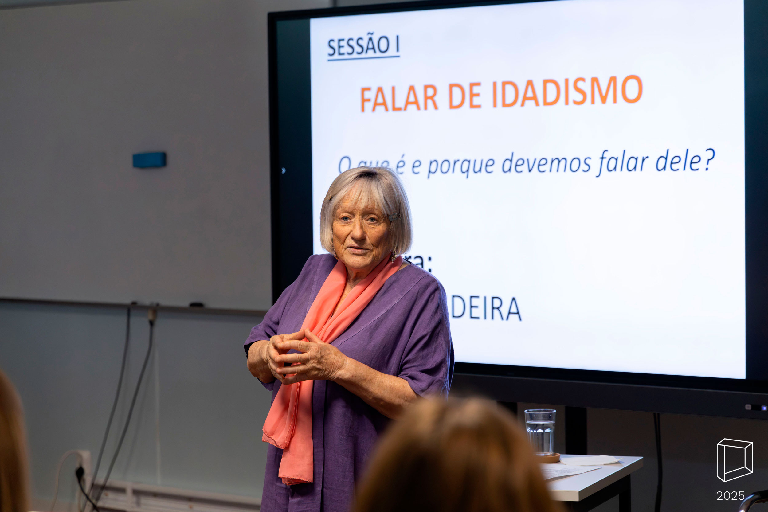 A primeira parte do evento teve lugar entre as 8h00 e as 11h00, na sala 2P9, e contou com dois convidados de destaque: a atriz Amélia Videira, com um reconhecido percurso na área cultural e de intervenção social, e José Cerqueira, fundador da agência Unlock Brands e especialista em estratégias de marca e inclusão. Ao longo da sessão, os oradores partilharam experiências, reflexões e exemplos práticos, promovendo um debate dinâmico com os participantes sobre o idadismo e os seus impactos na comunicação, no mercado de trabalho e no quotidiano.