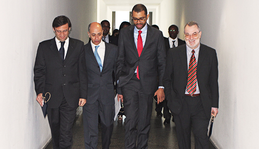 [Fotografia] Da esq. para a dir.: Prof. Doutor André Sendin, Prof. Doutor Jorge Veríssimo, Dr. Démis Lobo Almeida e Prof. Doutor Luís Vicente Ferreira.