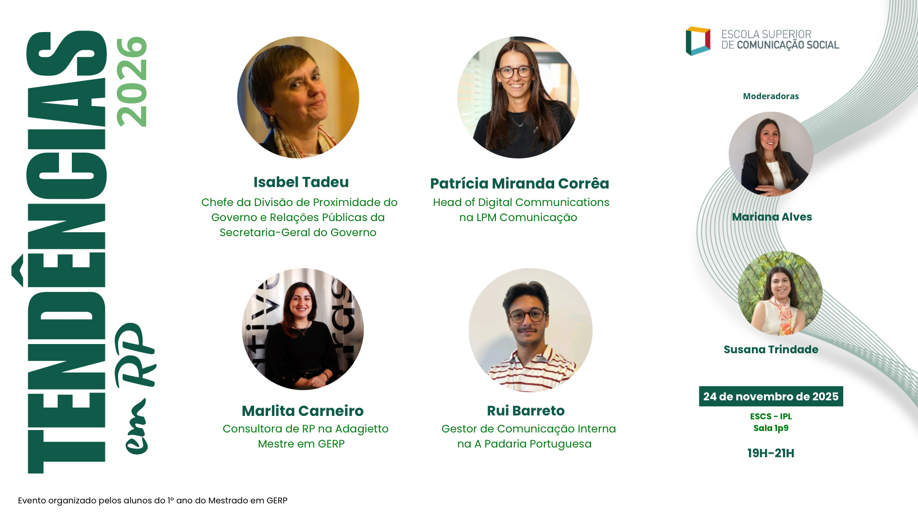 No âmbito da unidade curricular de Estratégia em Relações Públicas, os estudantes do 1.º ano do Mestrado em Gestão estratégica das Relações Públicas (GERP) convidam: